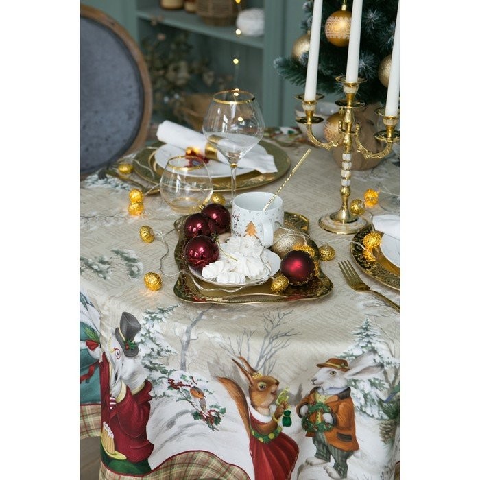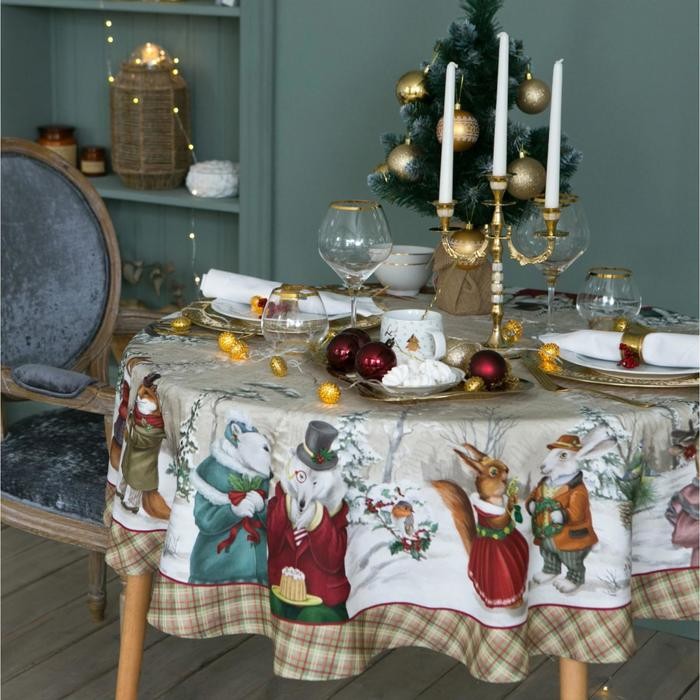 Скатерть «Этель» Winter holidays d=150см +/-3см с ГМВО, 100% хл, саржа 190 гр/м2