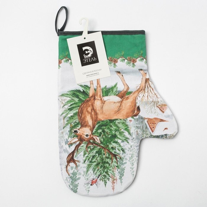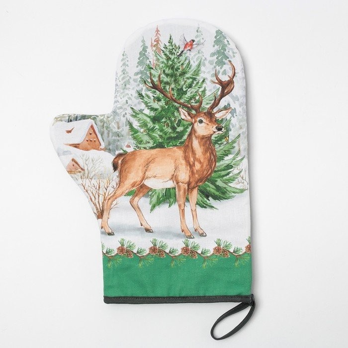 Варежка-прихватка «Новогодний лес» 20х28см, саржа, 100% х/л, ватин 250г/м2