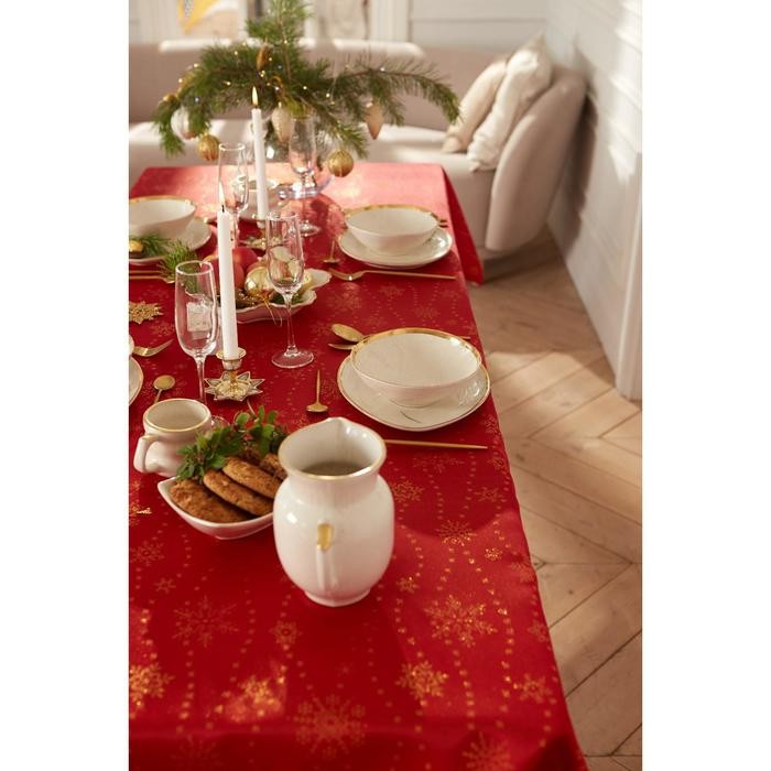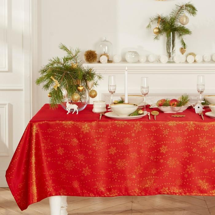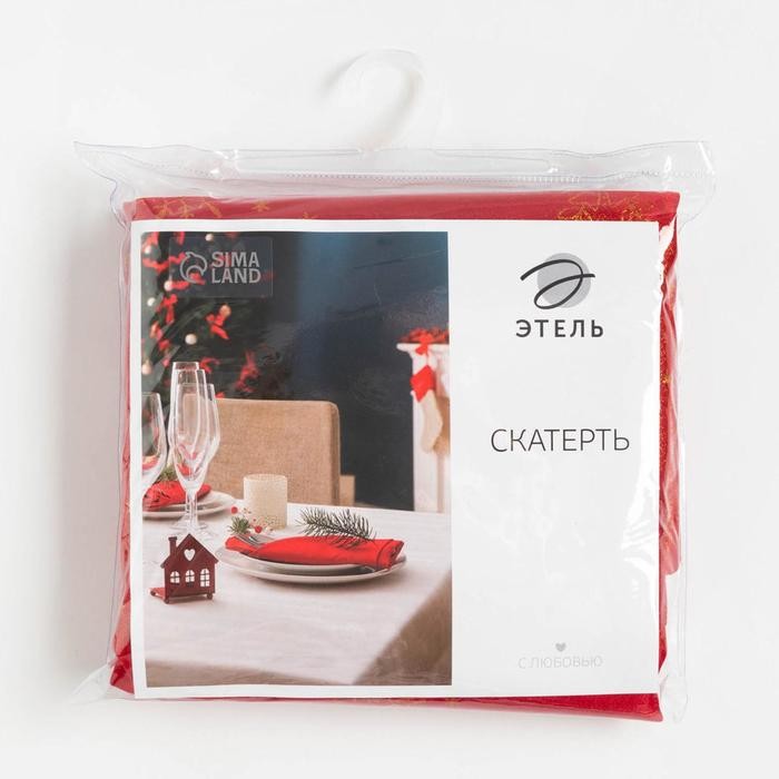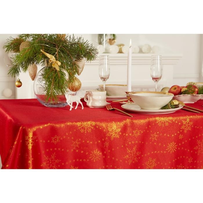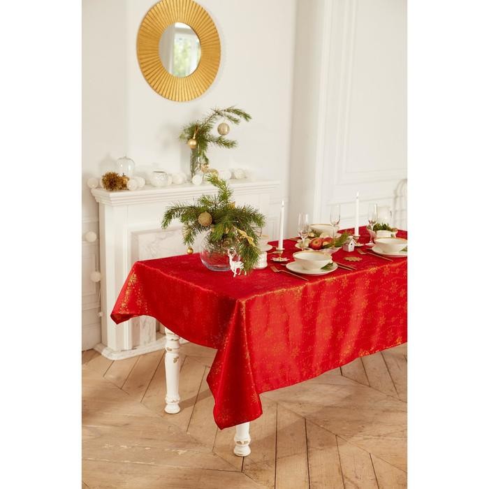 Скатерть Этель «Новый год: Снежинки» цвет красный, 150*220 см, 115 ±10 гр, 100% п/э