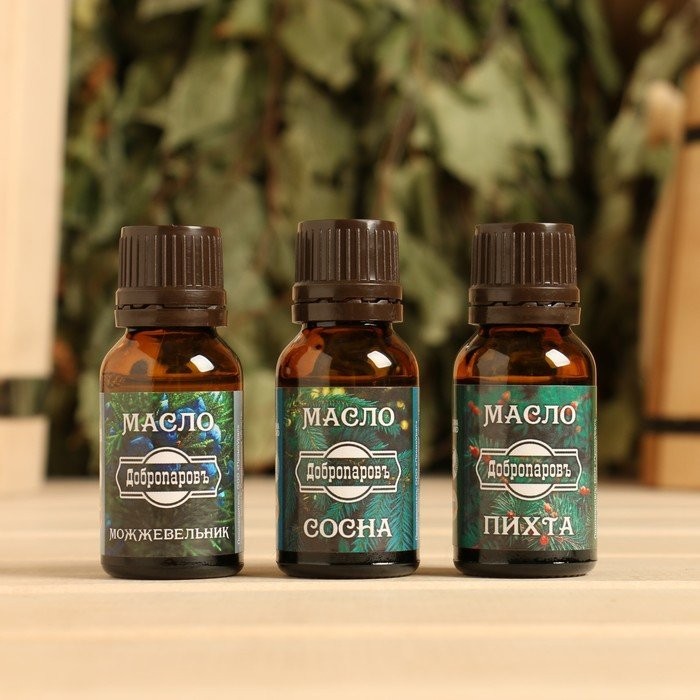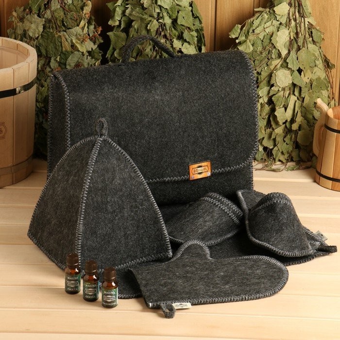 Набор для бани портфель 5 предметов, серый, 3 масла по 15 мл  (можжевельник, пихта, сосна)