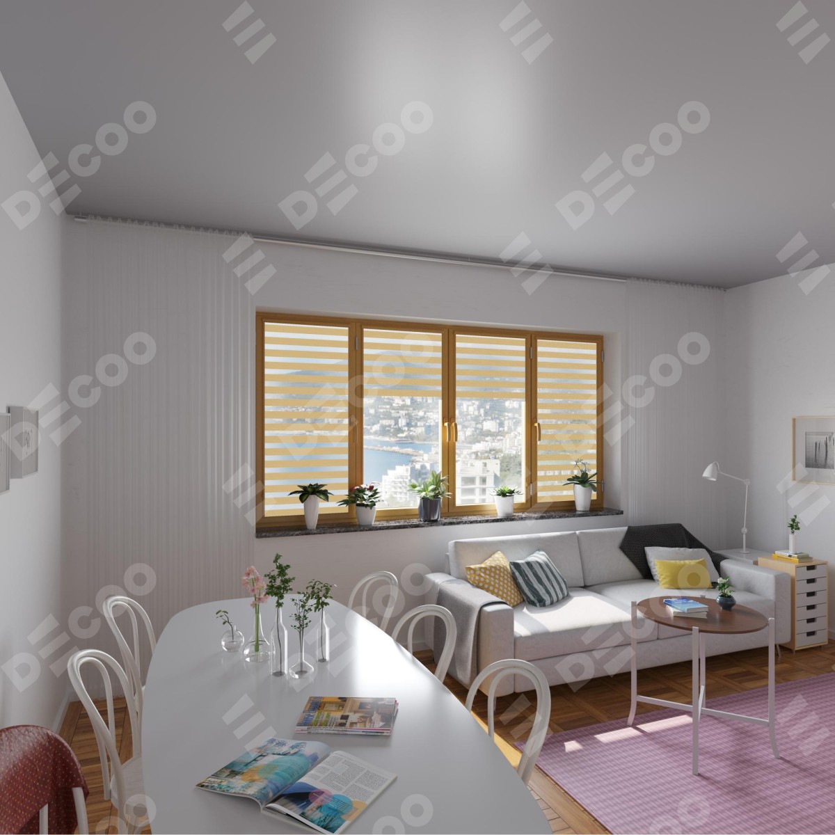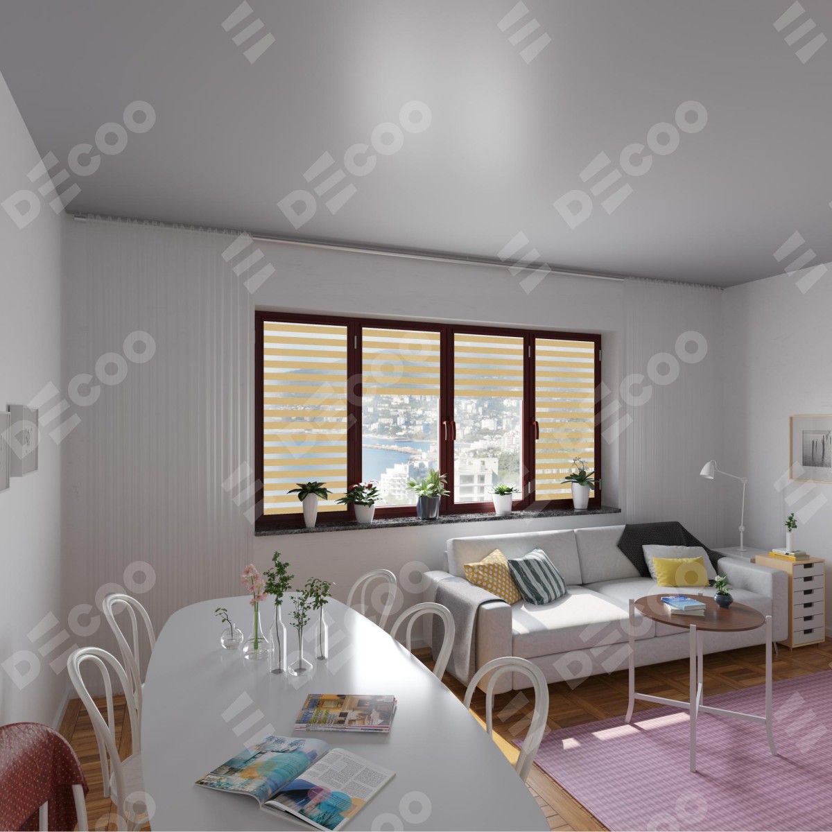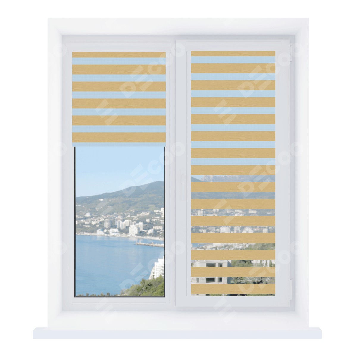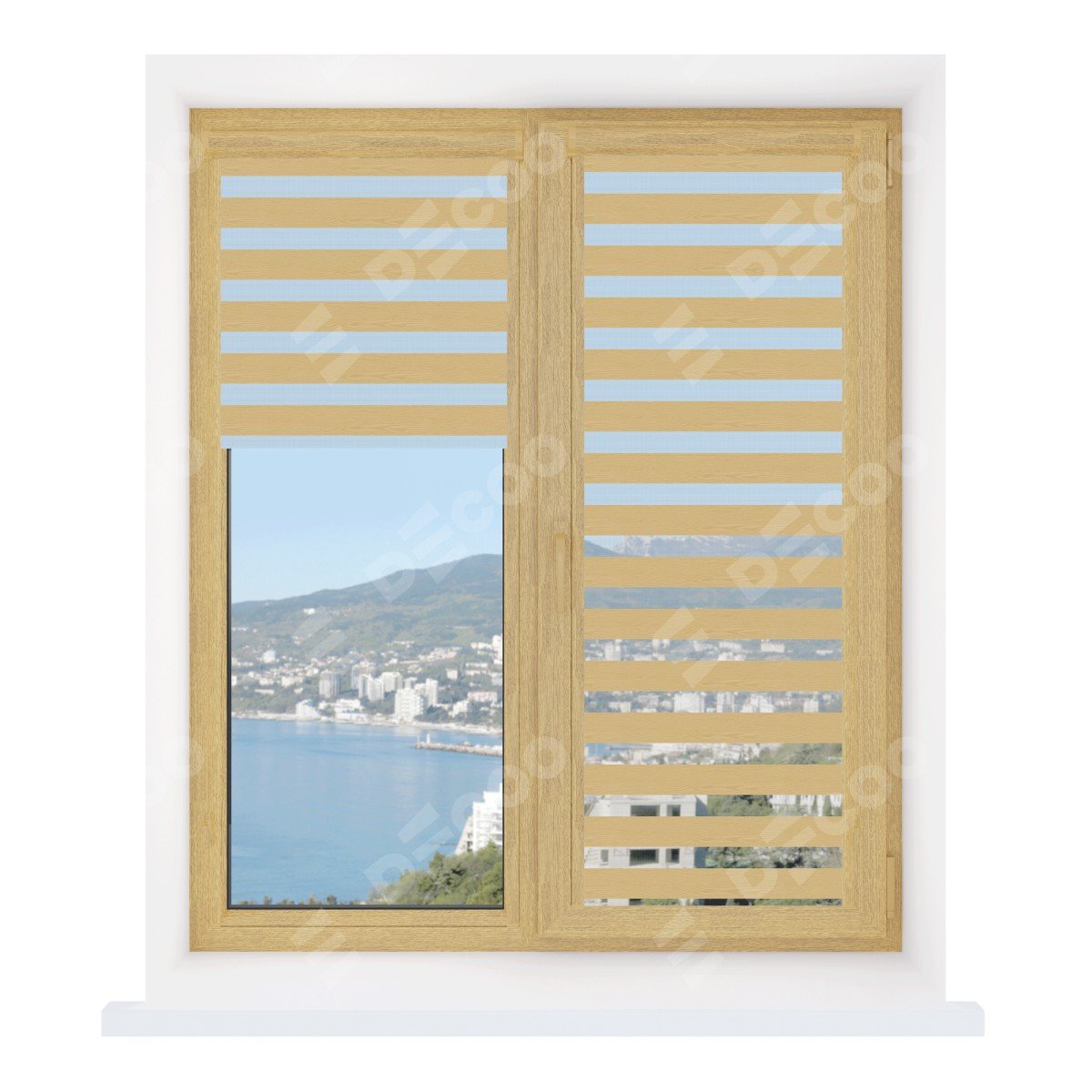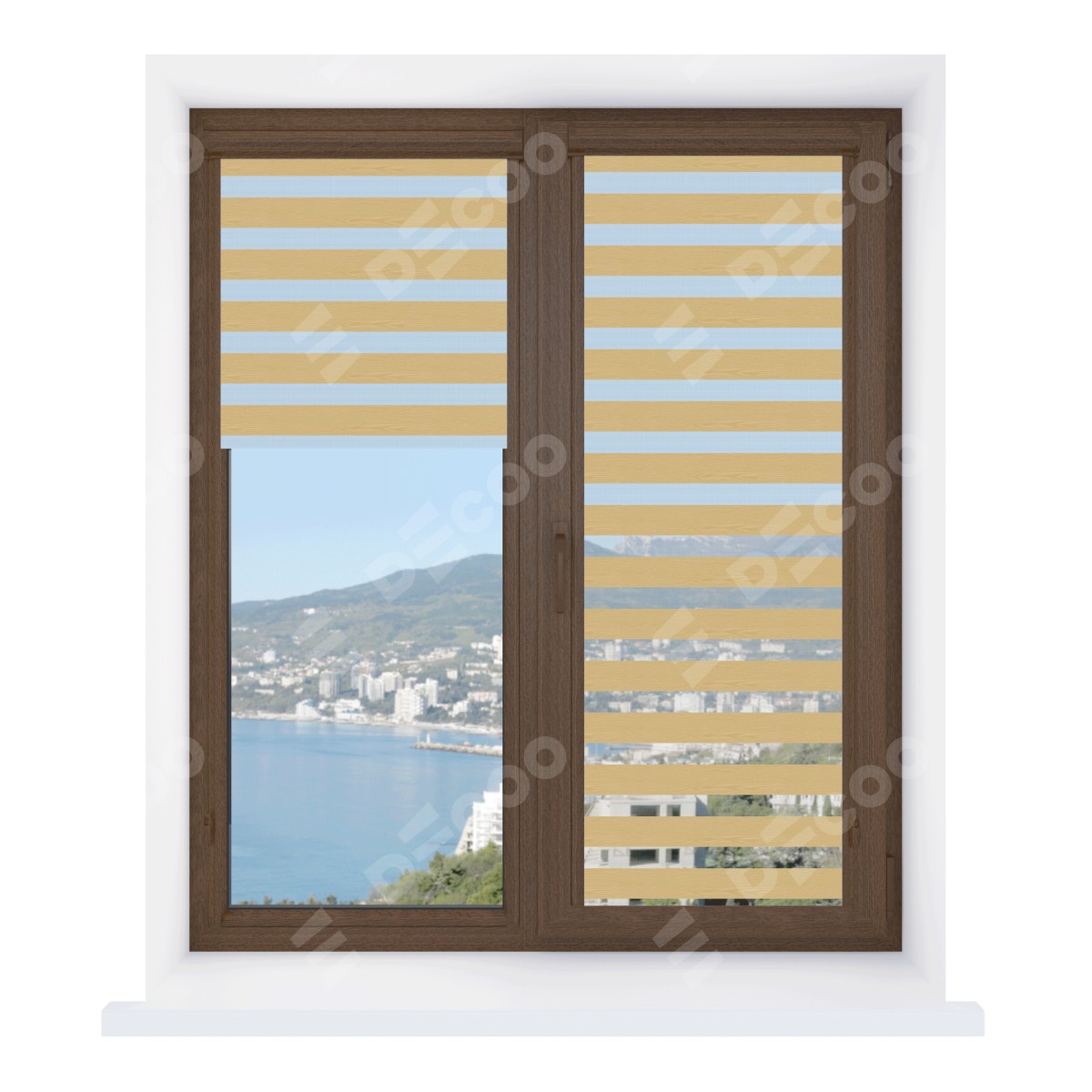 Рулонная штора День-ночь Уни 2 Wood бежевый отлично подойдёт для интерьера: комната, офис и для дома.