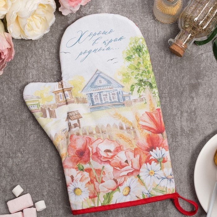 Варежка-прихватка «В краю родном» 20х28см, саржа, 100% х/л, ватин 250г/м2