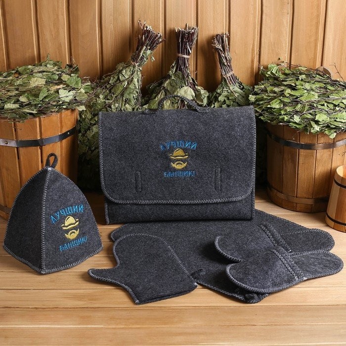 В портфеле можно хранить банные принадлежности и средства личной гигиены. Банная шапка защитит голову от перегрева, волосы от ломкости, а рукавица — от случайных ожогов.