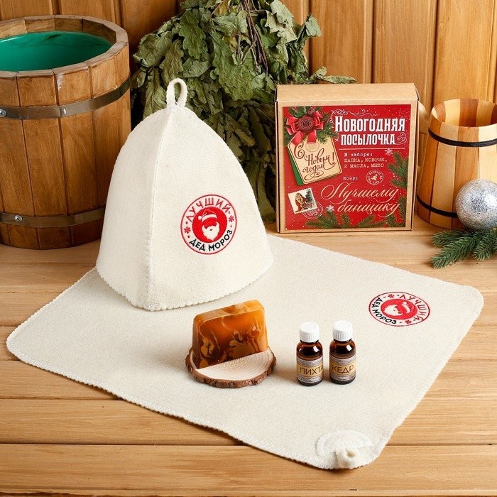 Подарочный набор «Новогодняя посылочка»: шапка, коврик, 2 масла, мыло