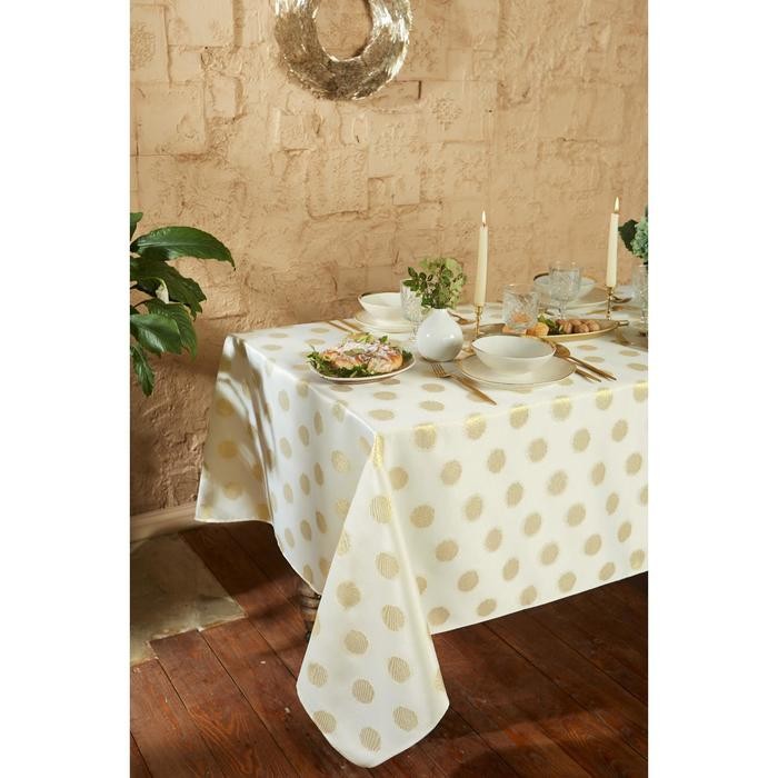 Скатерть Этель «Золотые шарики» цв.золотой, 150*220 см, 115 ±10 гр,100% п/э
