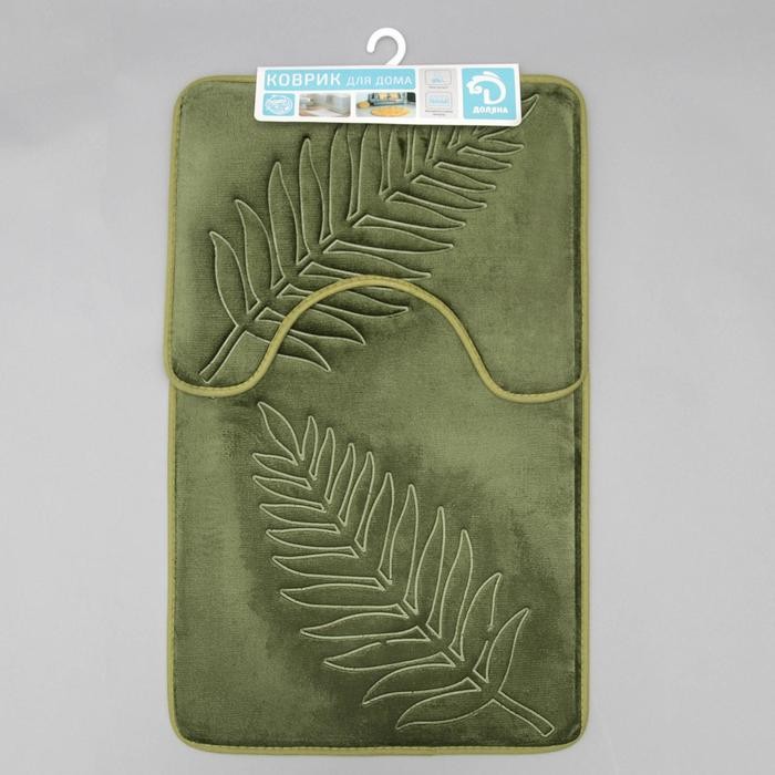 Набор ковриков для ванны и туалета Доляна «Тропики», 2 шт: 40×50, 50×80 см, цвет хаки