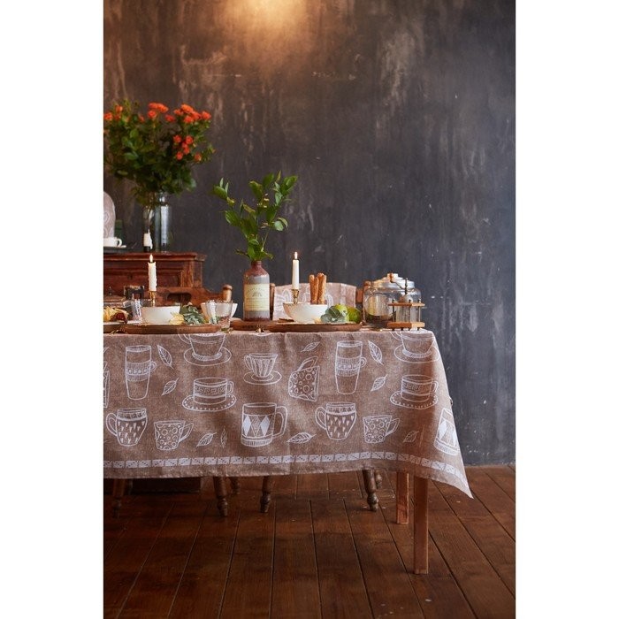 Скатерть «Доляна» Cup of tea 110×144 см, 100% хлопок, 164 г/м2