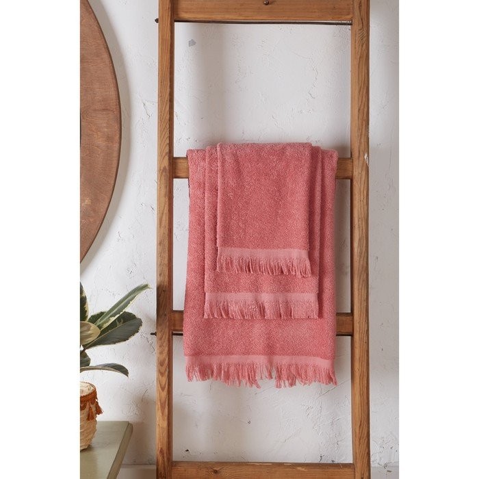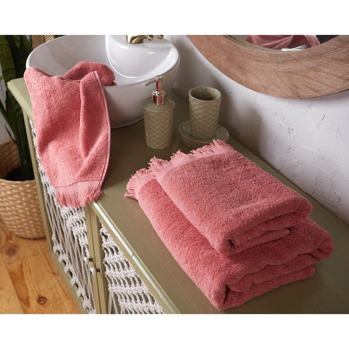 Полотенце махровое Love Life Fringe 70*130 пыльный розовый,100% хлопок,360 г/м2