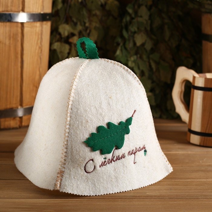 Шапка для бани «С лёгким паром» с нашивкой листик, из овечьей шерсти