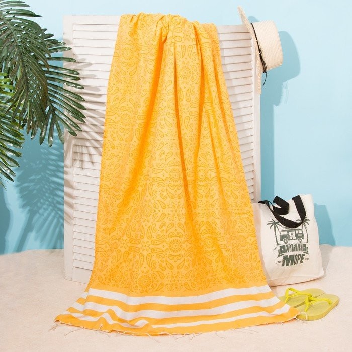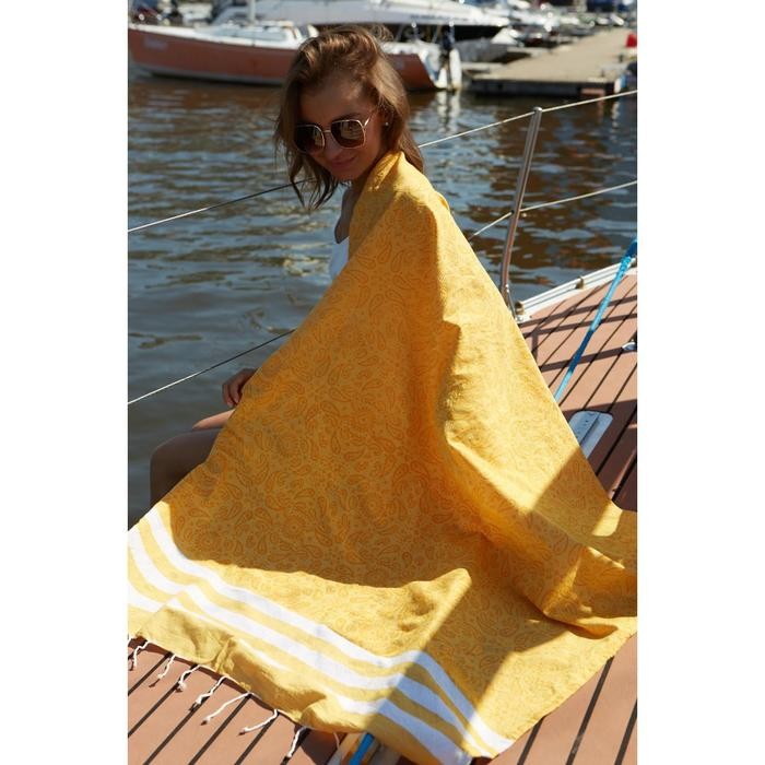 Полотенце для ванны Пештемаль Этель «Персия» 90х170см, 150г/м,80% хл, 20% п/э, желтый
