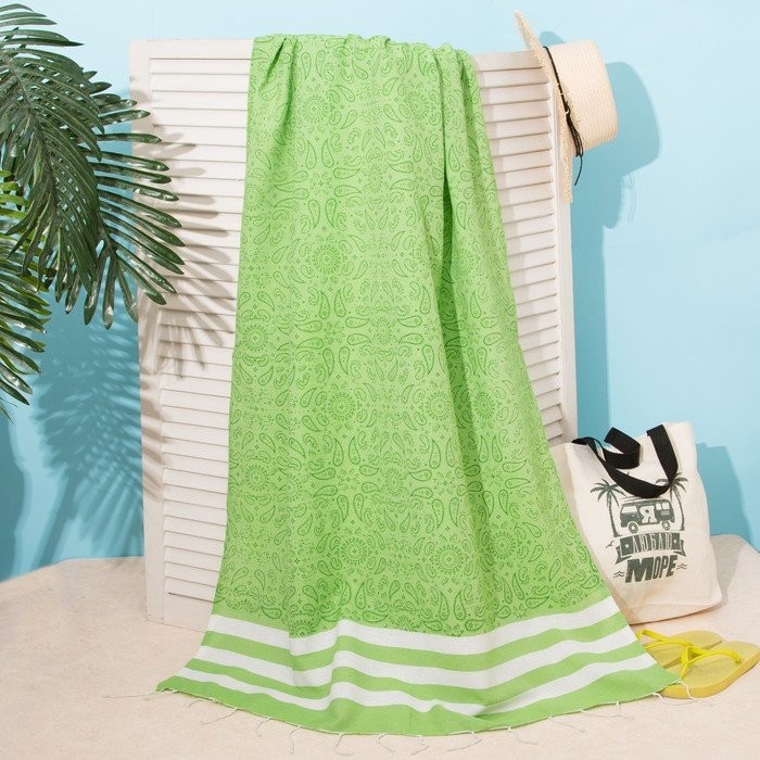 Полотенце для ванны Пештемаль Этель «Персия» 90х170см, 150г/м,80% хл, 20% п/э, зеленый