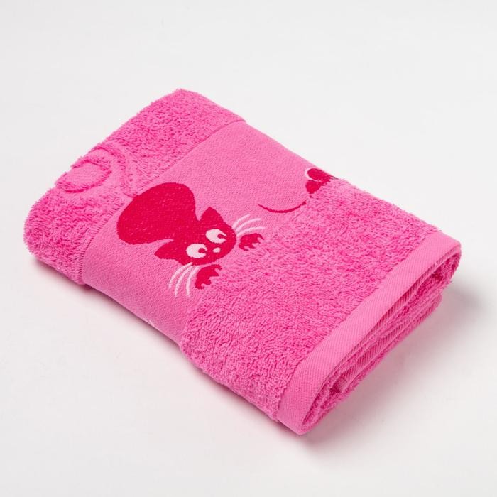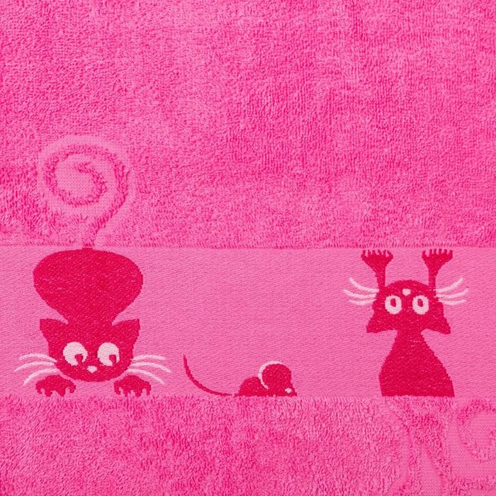 Полотенце махровое с бордюром «Кошки» цвет розовый, 50х90см