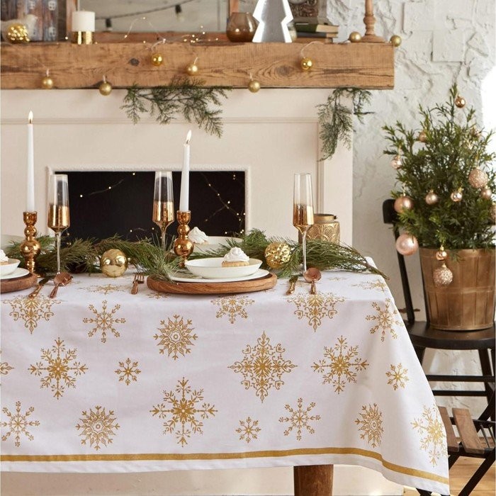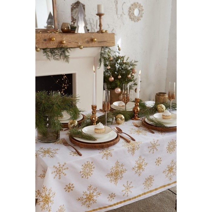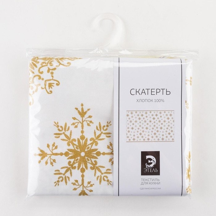 Скатерть «Этель» Золотые снежинки 149х220см, 100%хл, 190г/м2