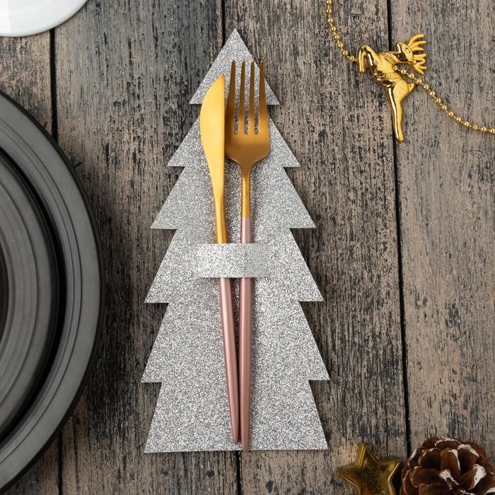 Конверт для столовых предметов «Елка» 11×25 см, 100% п/э, фетр