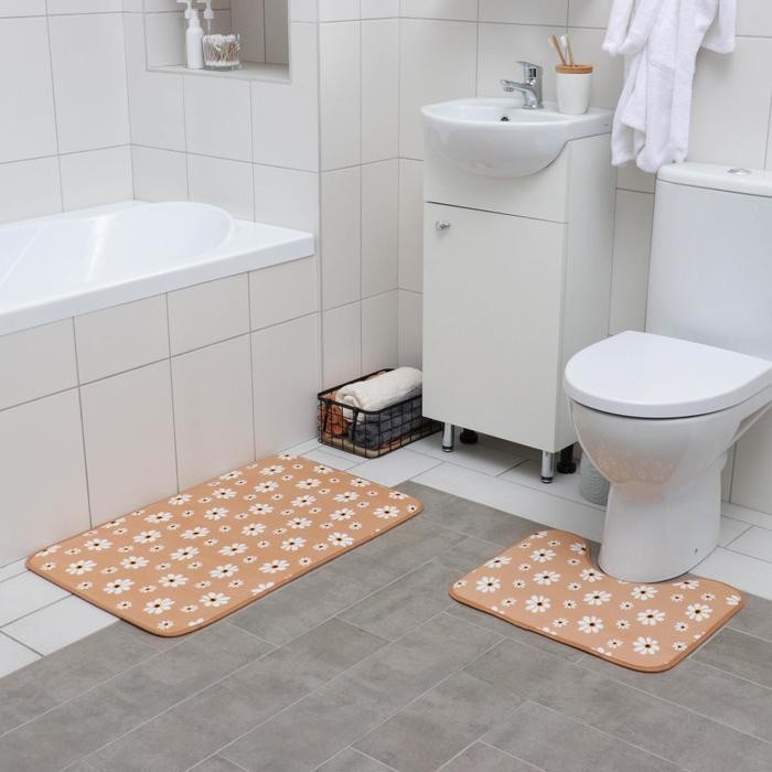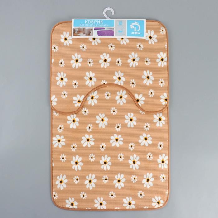 Набор ковриков для ванны и туалета «Ромашки», 2 шт: 50×80, 40×50 см, цвет бежевый