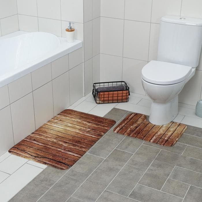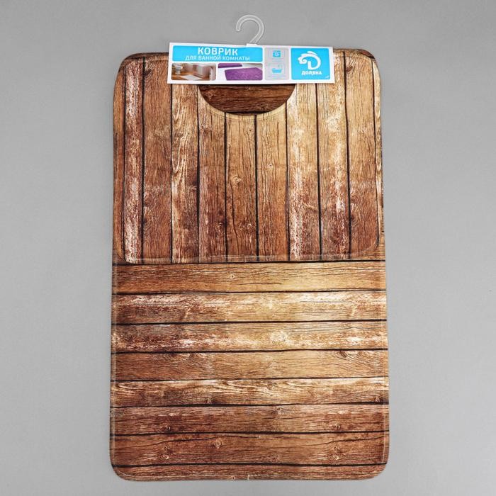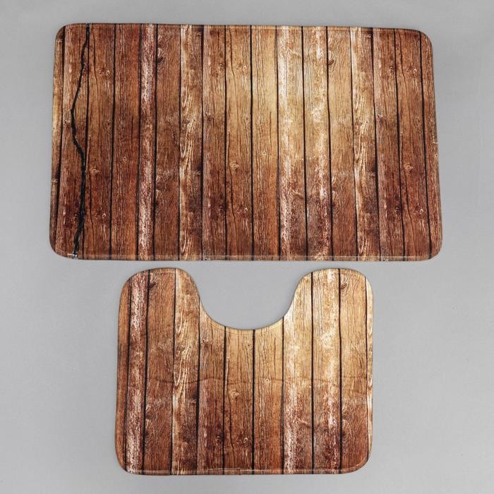 Набор ковриков для ванны и туалета Доляна «Досочки», 2 шт: 79×50, 50×39 см, цвет коричневый