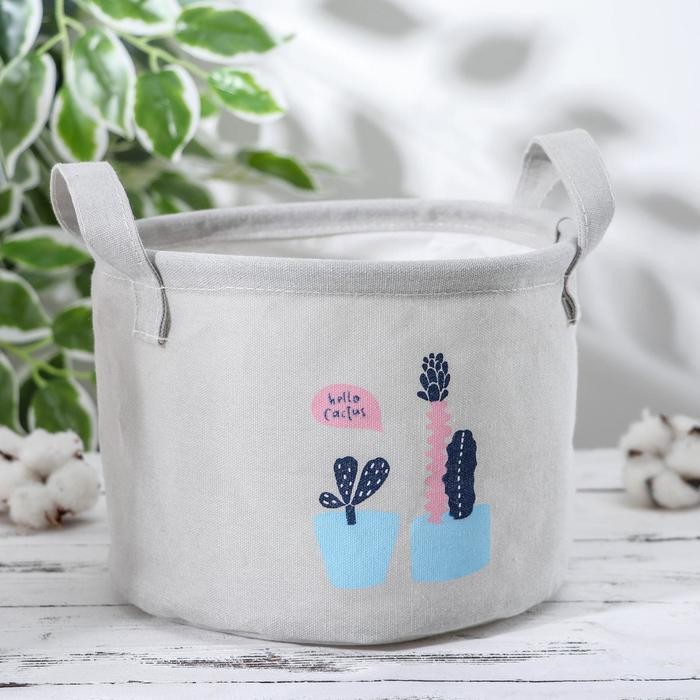 Корзина для мелочей с ручками «Кактус», 20×20×15 см, цвет бежевый