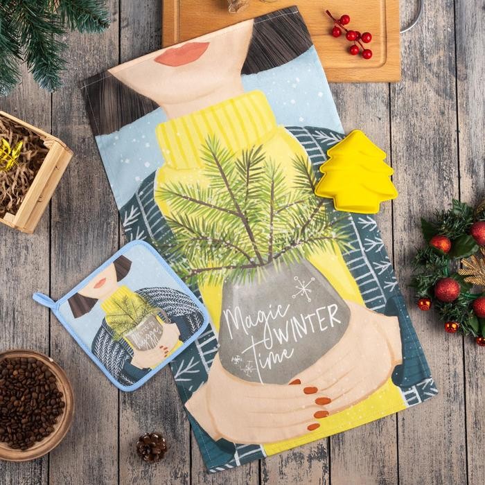 Набор подарочный Magic winter кухонное полотенце, прихватка, силиконовая форма