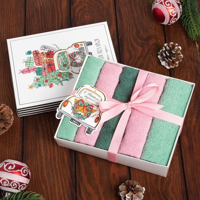 Набор махровых полотенец «Волшебных подарков» 30×30 см -5шт, 100% хл, 340гр/м2