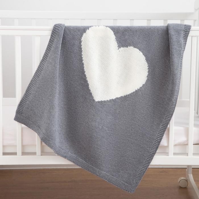Плед вязаный Крошка Я «Сердце» цвет серый, 75×95 см
