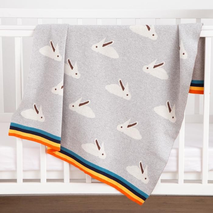 Плед вязаный Крошка Я «Зайки» цвет серый, 80×100 см