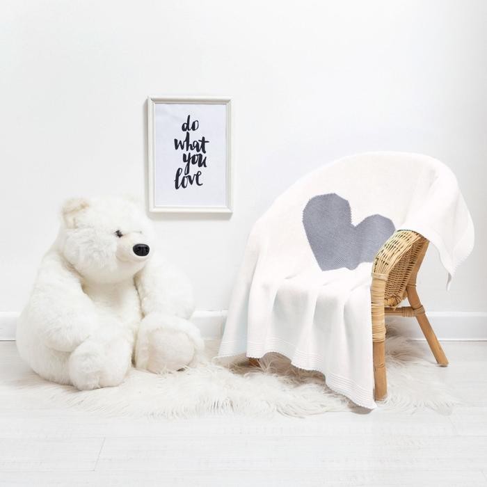 Плед вязаный Крошка Я «Сердце» цвет молочный, 90×90 см