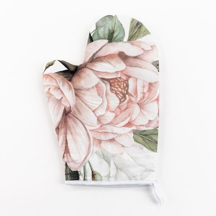 Варежка-прихватка «Этель» Пионы 20х27см,100% х/л, ватин 250г/м2 (двухстороняя)