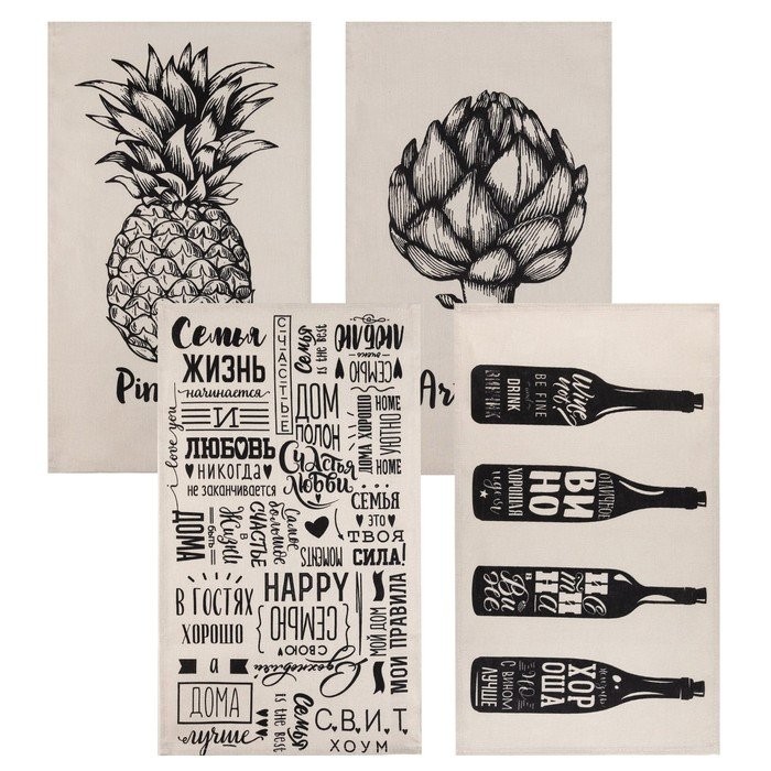 Набор кухонных полотенец Доляна «Семейное счастье» 35х60см-4шт, 100% хл