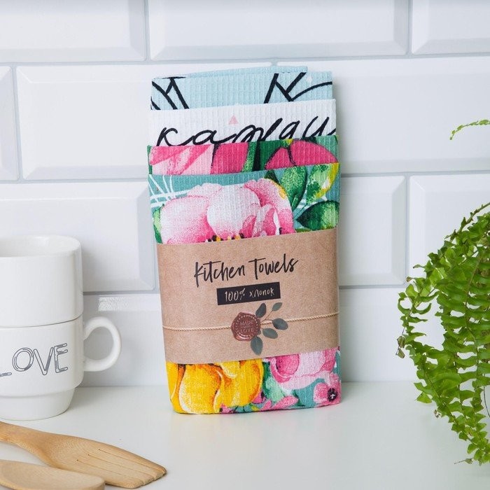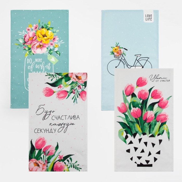 Набор кухонных полотенец Доляна «Цвети» 35х60см-4шт, 100% хл