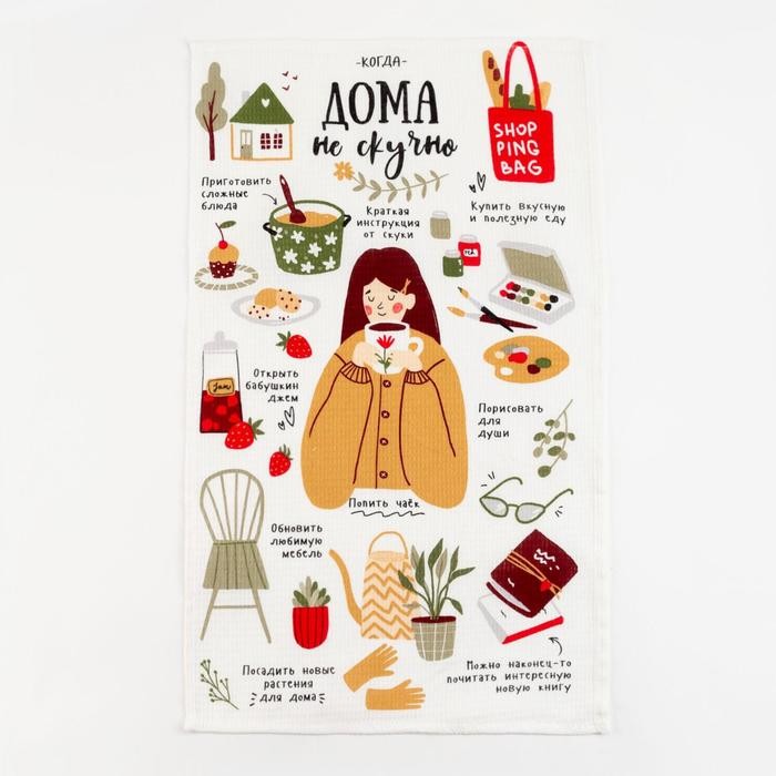 Полотенце кухонное Доляна «Дома не скучно» 35×60 см, 100% хл, 160г/м2