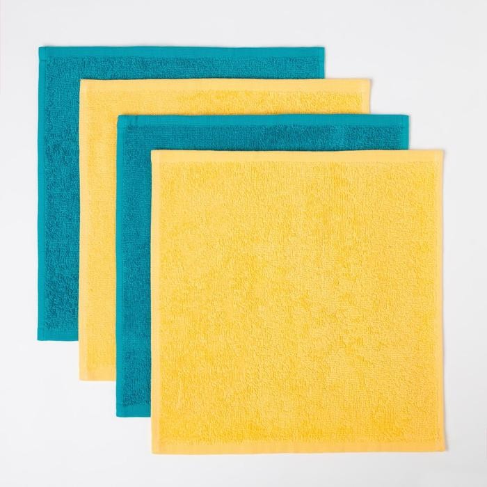 Набор декоративных махровых салфеток «Зайцы» 30×30 см — 4 шт, 100% хлопок, 340 гр/м2