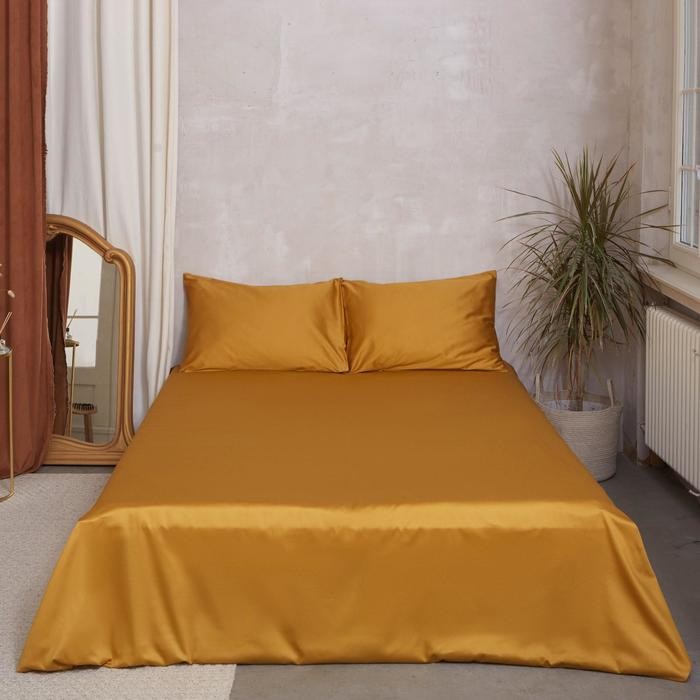 Простыня Этель 235*260 см, цв.горчичный, 100% хлопок, мако-сатин, 125 г/м²