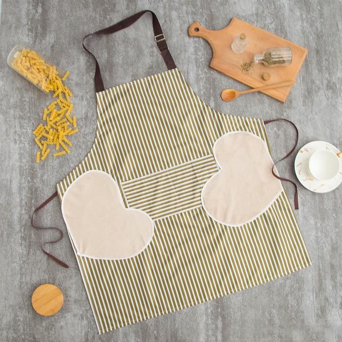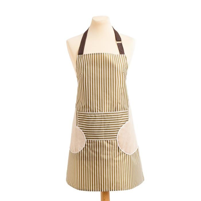 Фартук Доляна с карманами в полоску цв.зеленый, 70*65 см, 100% п/э