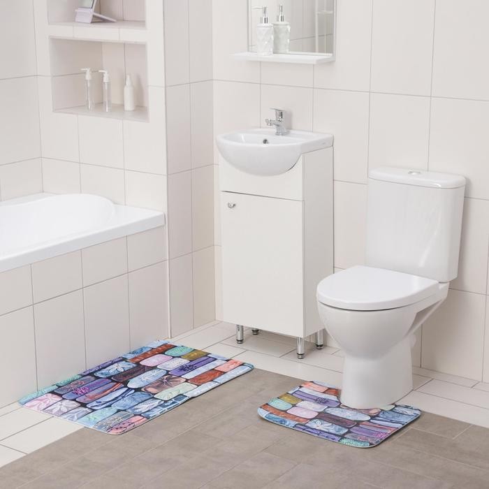 Набор ковриков для ванны и туалета Доляна «Кирпичики», 2 шт: 40×50, 50×80 см