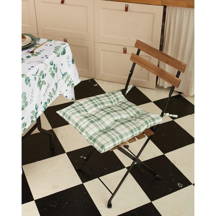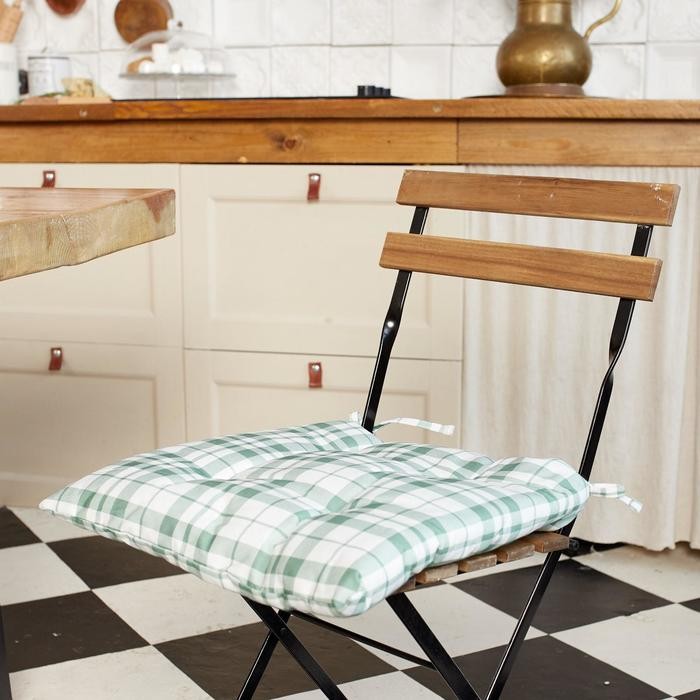Сидушка на стул «Этель"Eucalyptus (клетка) 42х42см, 100% хл, саржа 190 г/м2