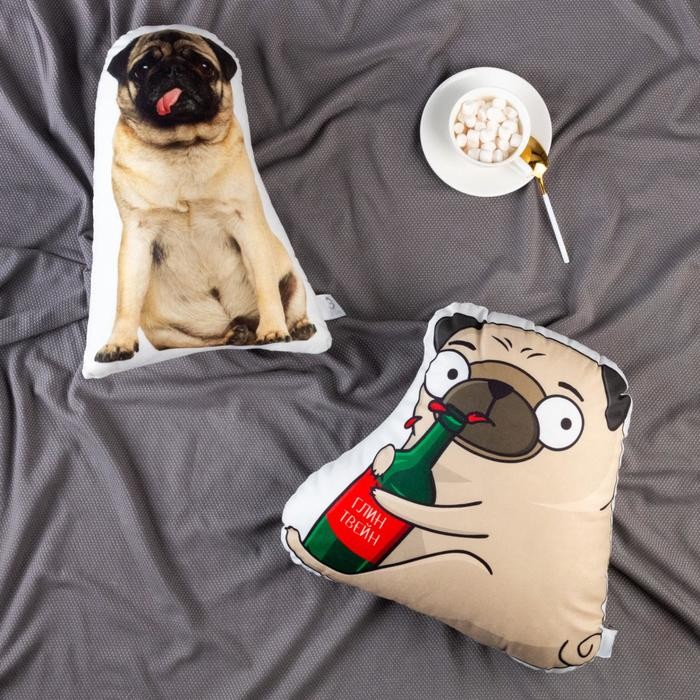 Подушка декоративная «Мопс» 29×40 см, велюр, 100% п/э